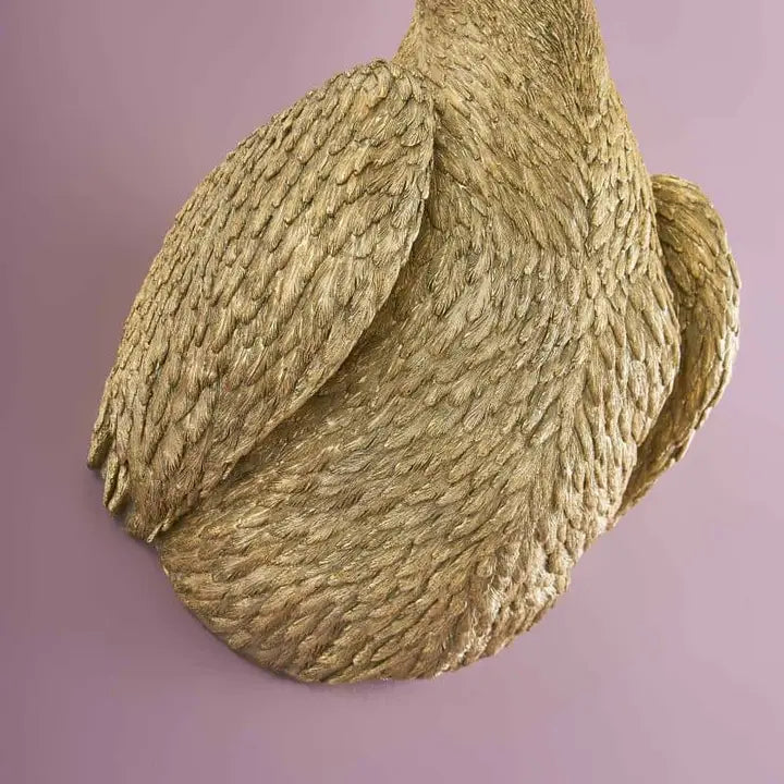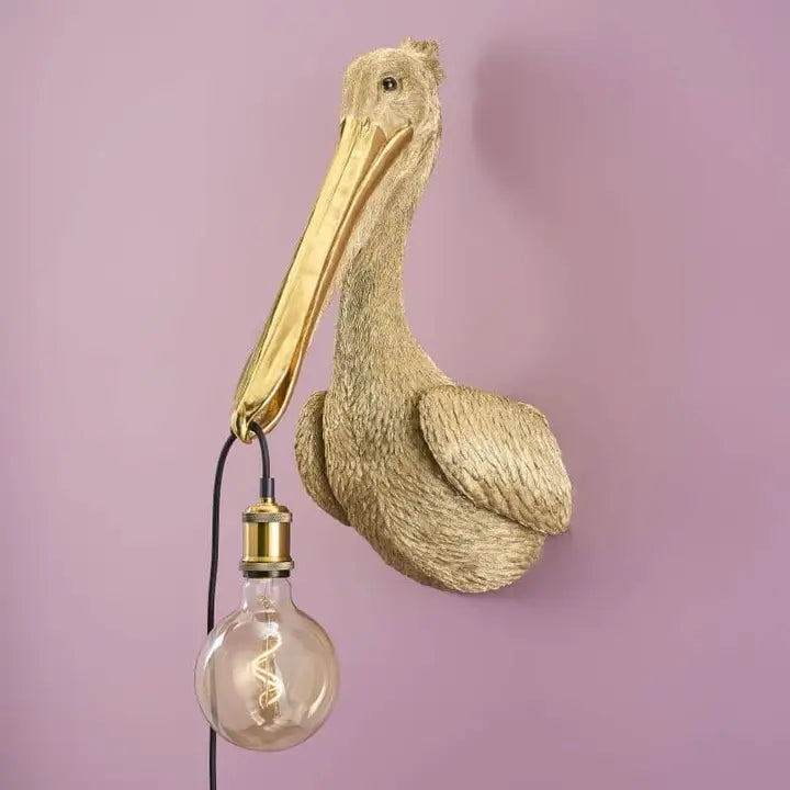 This extraordinary wall lamp in the shape of a pelican is made of robust polyresin and features a golden coating. It is a real eye-catcher and provides elegant lighting.