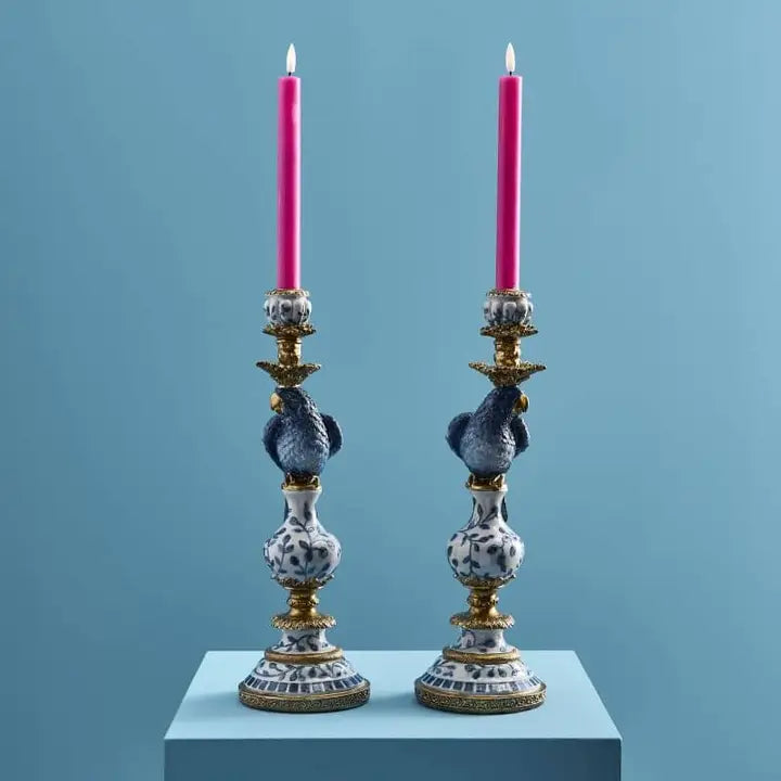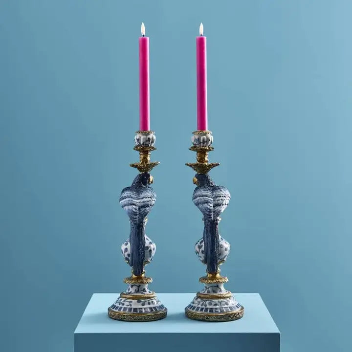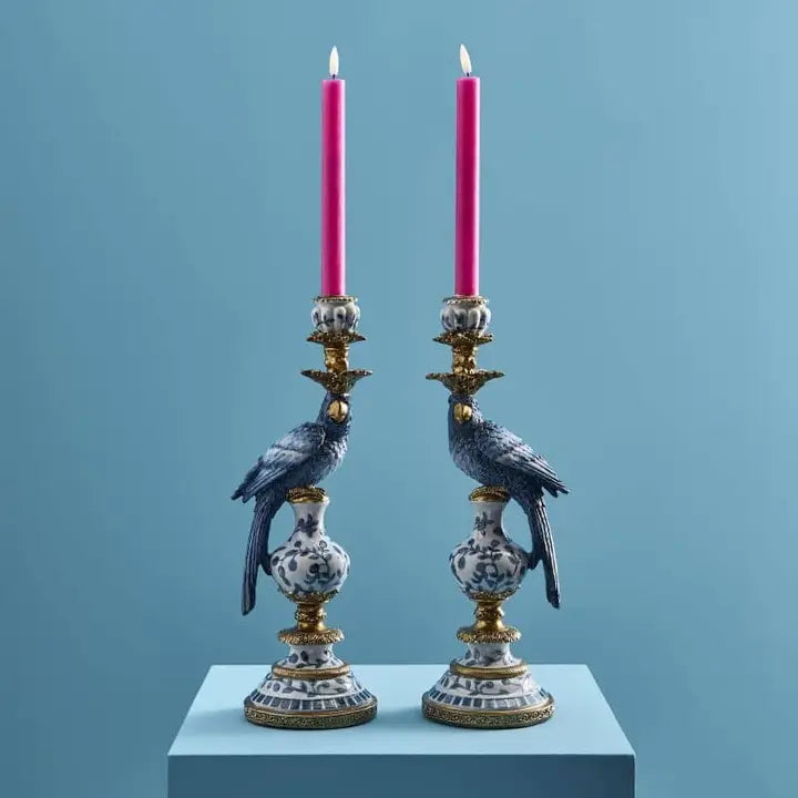 The parrot candle holders in a set of 2 add tropical-exotic accents with their striking design. Ideal for those who love vintage charm and eye-catching decor.
