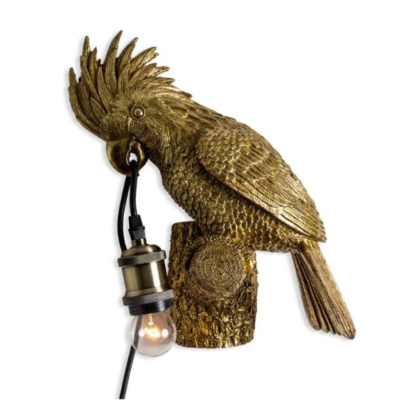 Gold Cockatoo on Perch Wall Lamp