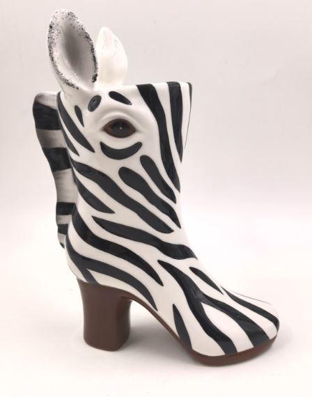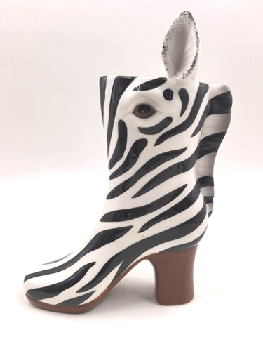 Zebra Head Heeled-Boot Ceramic Vase