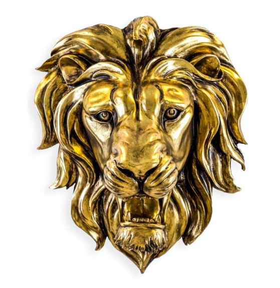 Large Gold Roaring Lion Wall Head