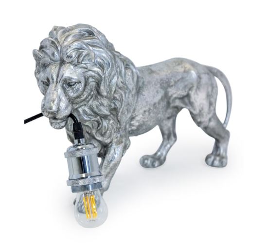 Silver Prowling Lion Table Lamp