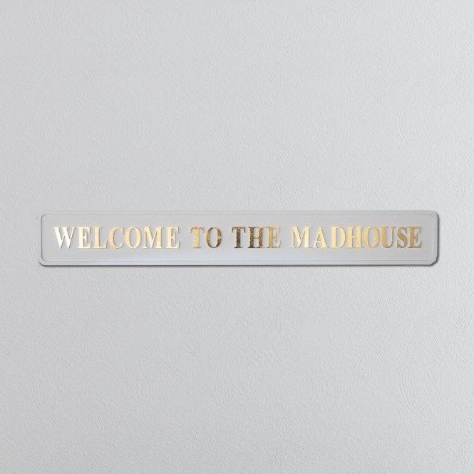 - Cream Welcome To The Mad House Foiled Sign